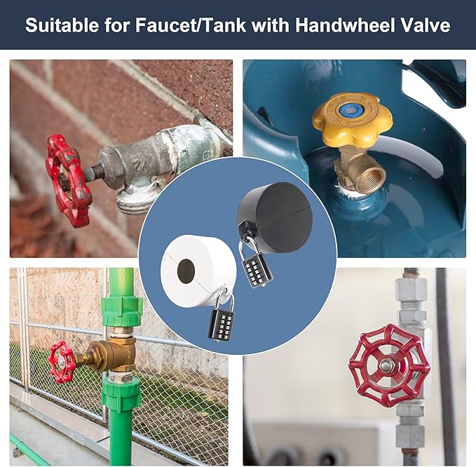 • Outdoor Faucet Cover: The door lock for renters not only prevent door locks from being maliciously turned, but they can also lock outdoor faucet switches to prevent children from playing with water or water theft. Water spigot lock can also be used to cover garden hose bib locks, propane tank locks, gate valve lockout and more