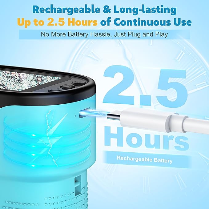 • Rechargeable and Long-Lasting: Equipped with a rechargeable battery, this handheld microscope for kids ensures hours of continuous exploration. Itโ€™s a great portable microscope for extended outdoor or indoor study sessions.
