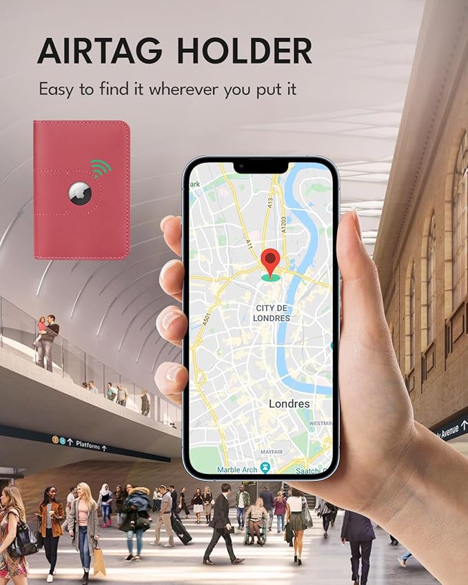 • Never lose your passport again:The airtag passport holder has a built-in AirTag holder that keeps your AirTag securely in place. Easily locate your passport cover wherever you put it(AirTag Not Included). Practical passport wallet for our travel