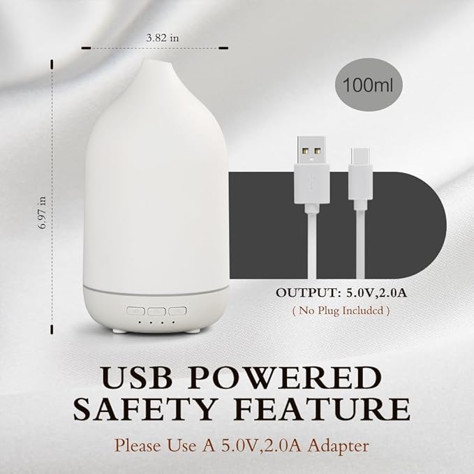 • CRAFTED FROM DURABLE BPA-FREE PLASTIC - This 100ml diffuser is easy to clean, refill, and portable. Its simple one-button control manages timer settings and light options, making it a user-friendly and low-maintenance choice for daily aromatherapy at home, work, or even while traveling.