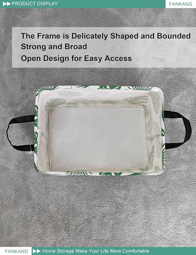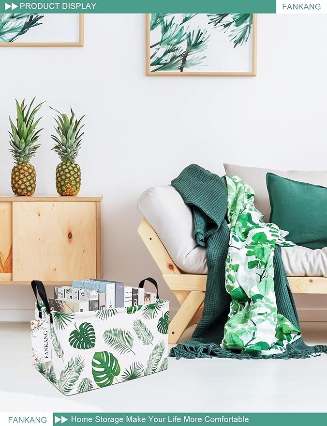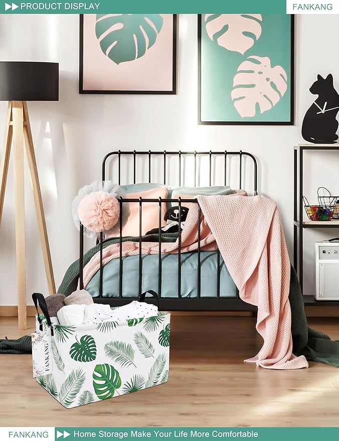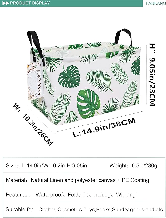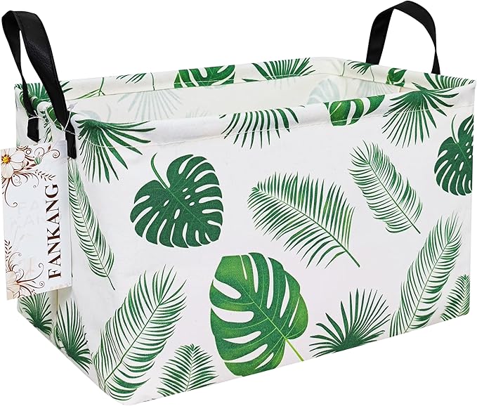 FANKANG Storage Bins, Nursery Hamper Canvas Laundry Basket Foldable with Waterproof PE Coating Large Storage Baskets for Kids Boys and Girls, Office, Bedroom, Clothes,Toys(Rec-Leaf )
