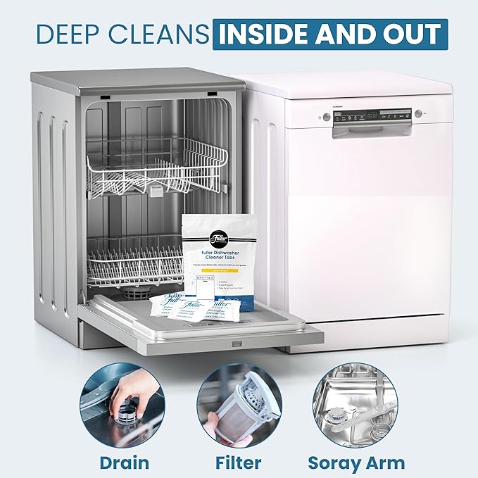 • ELIMINATES LIMESCALE & GREASE: Fuller Dishwasher Cleaner Tabs effectively remove lime scale, grease, and mineral build-up, keeping your dishwasher running at peak performance.