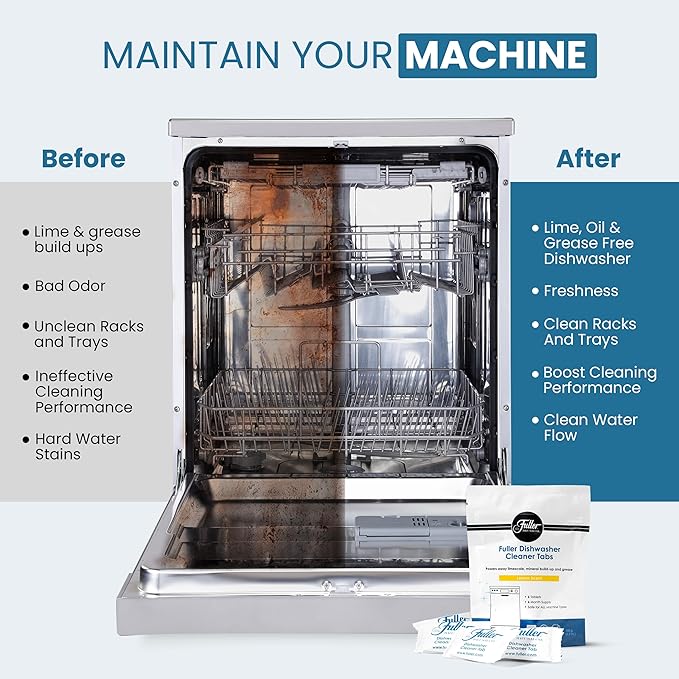 • ELIMINATES LIMESCALE & GREASE: Fuller Dishwasher Cleaner Tabs effectively remove lime scale, grease, and mineral build-up, keeping your dishwasher running at peak performance.