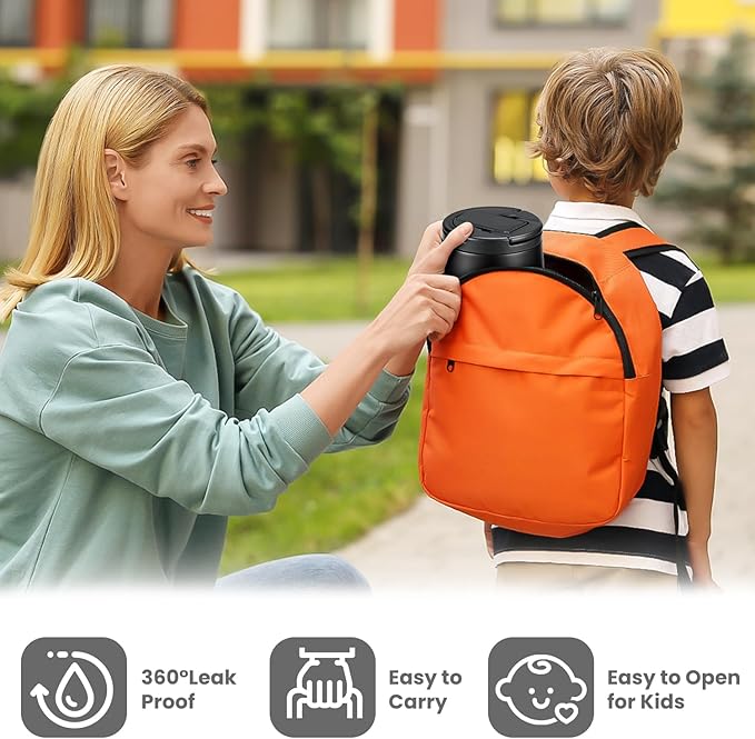 • 100% Leak Proof Design: our food thermos comes with a thick silicone gasket. You can put it into your lunch bag without worrying about spillage. The insulated thermal food jar comes with a stainless steel spoon, convenient for your child to use during lunch.