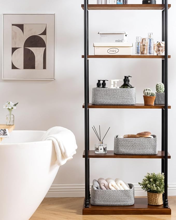 • [ Elegantly Designed to Match Any Dรฉcor ] Our small rope basket creates a minimalist appearance, and it adds a touch of warmth and texture to any room. The classic solid color design ensures seamless integration with your existing aesthetics, complementing any decoration. Perfect as decorative storage baskets for shelves, cabinets, and any open display space, making them a stylish and practical addition to any decor, enhancing the overall aesthetics of your room