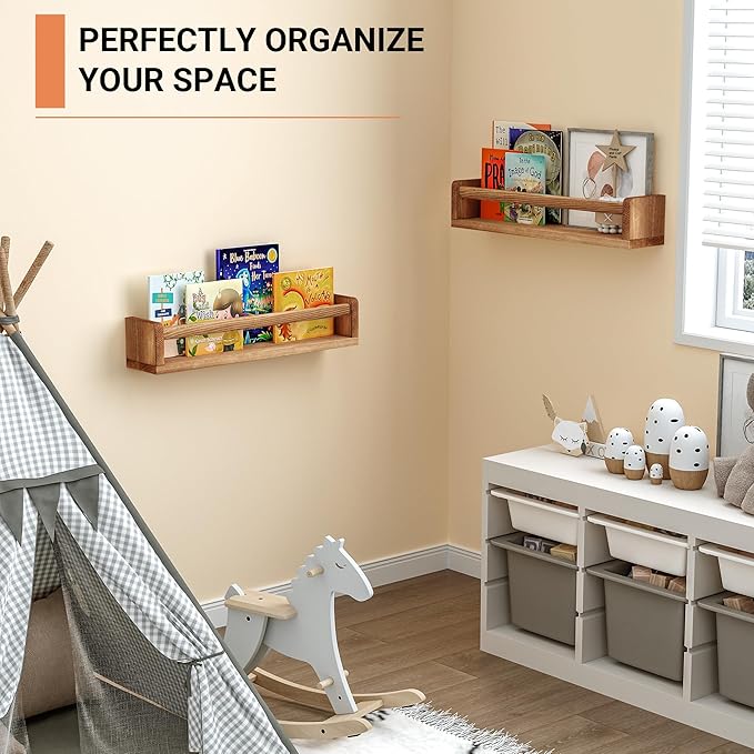 • [Ample Storage Space] - Measuring 16.5 inches, these nursery shelves offer ample room for organizing children's books, toys, photos, and other small items. They encourage a love for reading while keeping spaces tidy. With 0.6โ€ thicken panels, each bookshelf can hold up to 30 LBS