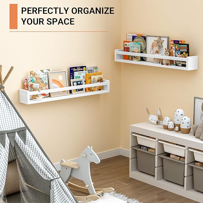 • [Ample Storage Space] - Measuring 31.8 inches, these nursery shelves offer ample room for organizing children's books, toys, photos, and other small items. They encourage a love for reading while keeping spaces tidy. With 0.6โ€ thicken panels, each bookshelf can hold up to 30 LBS