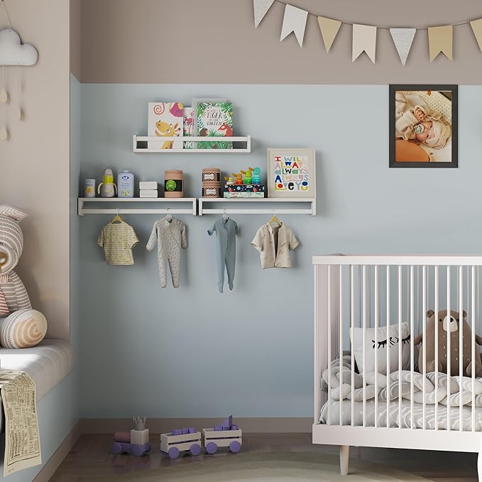 • [Experience Effortless Mounting] - Our nursery floating shelf comes with detailed step-by-step instructions and a complete hardware kit for easy installation. Measured size of 4โ€ D x 24โ€ W x 3.5โ€ H, ideal size for nursery room.