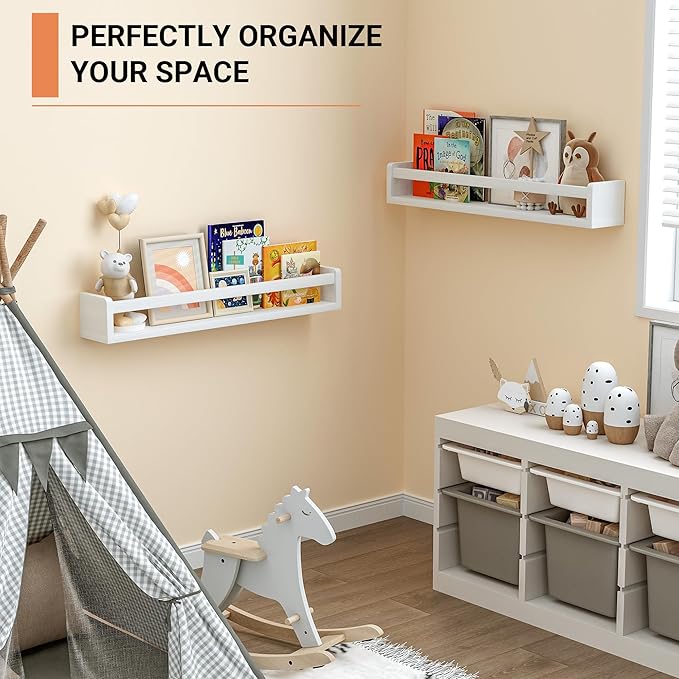 • [Ample Storage Space] - Measuring 24 inches, these nursery shelves offer ample room for organizing children's books, toys, photos, and other small items. They encourage a love for reading while keeping spaces tidy. With 0.6โ€ thicken panels, each bookshelf can hold up to 30 LBS