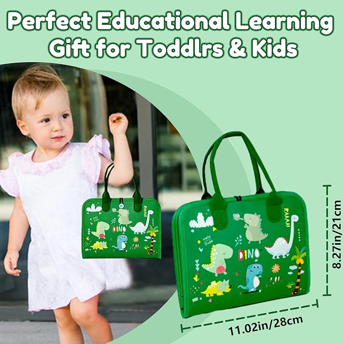 • 8 Pages in 1 Busy Board: With over 20 interactive activities in 8 pages, our dinosaur-themed busy book helps toddlers master practical skills like fine motor skills, problem-solving, dressing, and hand-eye coordination. Includes zippers, gears, buttons, shoelaces, clock, weather, alphabet, numbers, shapes and puzzles, all designed to keep little hands busy and minds sharp! A must-have learning toys for toddlers 1-3 and kids ages 2-4