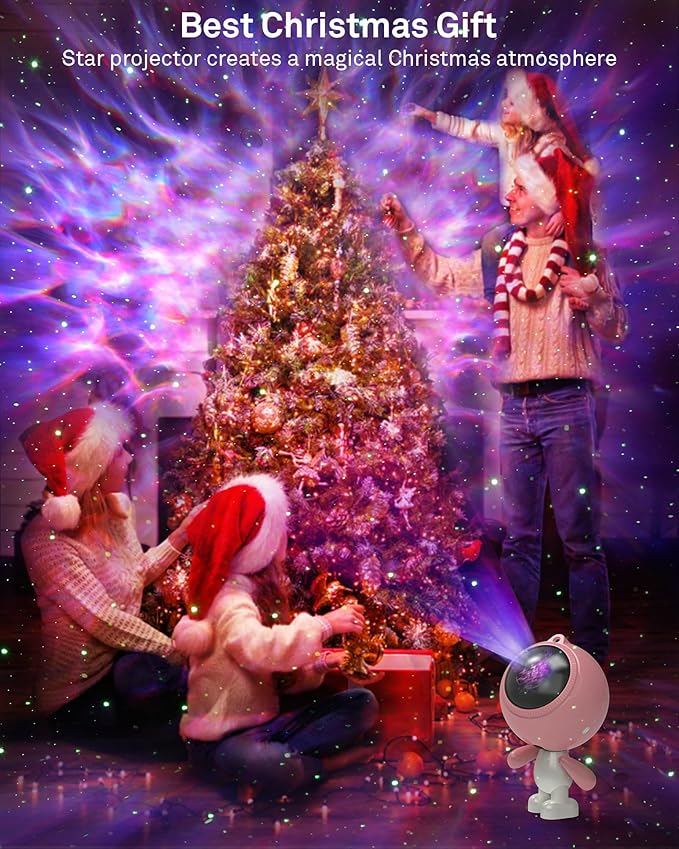 • Astronaut Galaxy Projector - The cute pink star projector illuminates your space with 10 stunning and soothing lighting effects. Transforms any room into a breathtaking celestial wonderland, casting dazzling galaxies and twinkling stars onto walls and ceilings, such as bedroom, living room, kid's room, nurseries, game room. Make your cozy space more special and charming.