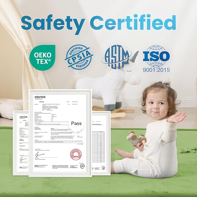 • Safety Certified & Fall-Proof Protection: Made with OEKO-TEX certified fabric and CERPITUR-US certified elasti-foam, this anti-fall mat meets ASTM/CPSIA safety standards, providing a soft barrier to prevent baby from rolling off beds or furniture. Perfect for bedside fall protection and safe sleep.