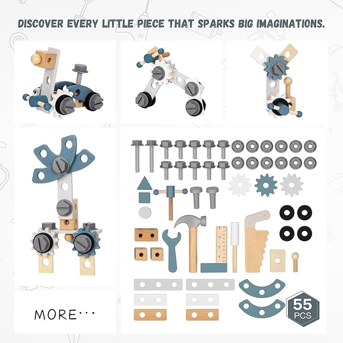 • 2-in-1 Interactive Tool Bench Fun: Boost creativity and motor skills with this wooden walker, featuring realistic tools like hammers, wrenches, and gears. Perfect for toddlers imaginative role-play learning