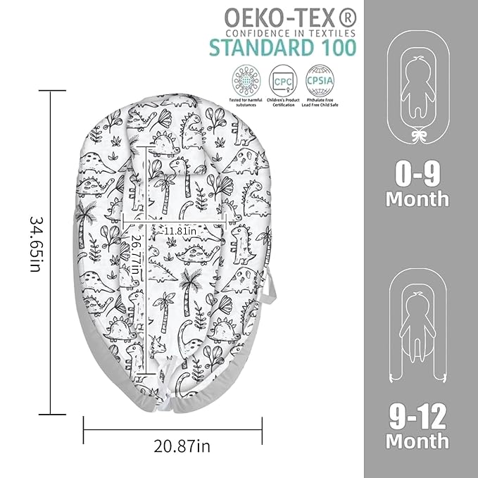 • Our Baby lounger cover all-around bumper is made with plenty of pure cotton filling on the edges to mimic the motherโ€™s womb for comfort. It has a high-density elastic sponge mattress at the bottom that doesn't twist inside the fabric to secure your newborn in place. With the framed structure, strong seams & durable zipper, you can easily wash.