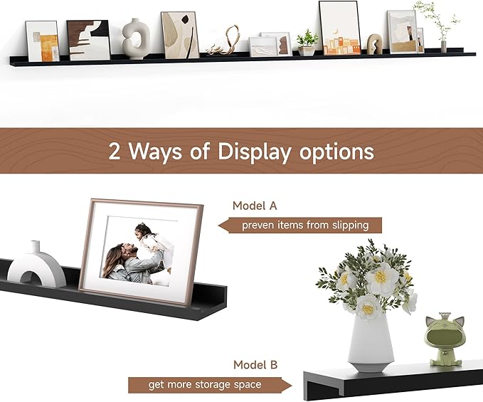 • MEMORIES SHOWCASE SHELF: Do you have a lot of memorable photos, but don't know how to display them, Fun Memories picture ledge shelves (especially in large sizes) are perfect for you to display them! With our hanging racks, you can store and display different types and sizes of photo frames in one place without worrying about