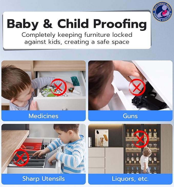 • 🔒【High Security】: Made of sturdy zinc alloy and ABS, the lock can handle at least 440 lbs of pull tension with screw installation, and the invisible installation design has high-security features such as anti-prying, anti-vandalism, child safety, and baby proofing.