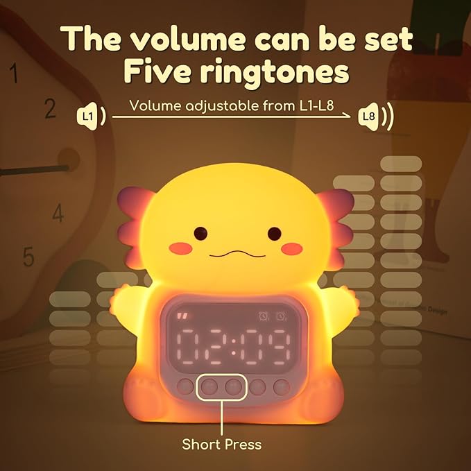 • Practical and Adorable Gift: This axolotl alarm clock is not only a practical gift that kids will love, but it also serves as a cute decoration for bedrooms, children's rooms, living rooms, or office desks
