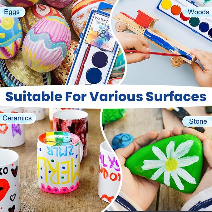 • Easy Clean Washable Watercolor Paints - Our water color paints are made with a special washable formula. Even the colorful stains left by children on skin, tables and clothes can be easily washed away, making cleanup a breeze and saving you a lot of time.