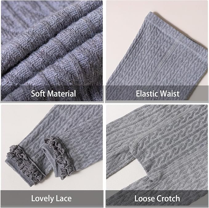 • 【Soft and comfortable】Silkglory baby girl leggings are made of 80% cotton,15% polyester and 5% spandex to ensure that they will not irritate your baby's skin.Made of high-quality materials,it is durable.Whether it is a school Halloween party, Christmas celebrations, or New Year's happy moments, it can accompany little girls to play and dance without worrying about wear and tear.What's more special is that it has cute lace decorations, adding a playful and eye-catching touch to little girls