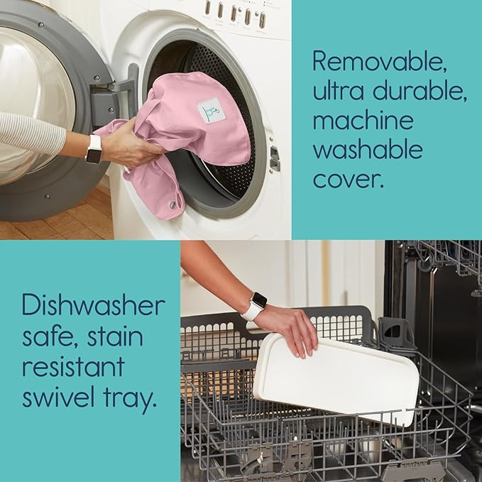 • MACHINE WASHABLE COVER | We all know that babies are messy eaters! Our portable booster seat is designed to effortlessly wipe clean, allowing more quality time with your precious tot. To assist with the inevitable mess, the fabric cover slides off the frame for machine washing - a must have for sanitizing and spaghetti stain removal.