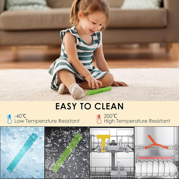 • EASY TO CLEAN: The toddler teether very easy to clean, just wash the sensory chewing toys with soapy water, or wash it with dishwasher. Our sensory chew stick can be sterilized by boiling water, steam sterilizer and sunlight. -40โ„ƒ to 200โ„ƒ Temperature resistant, we suggest cleaning it before first use and after each use