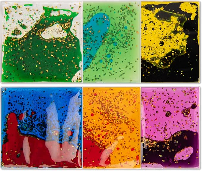 Art3d 6”x6” Square Sensory Fidget Liquid Motion Tiles for Kids, Toddler, Teens - Interactive Soft Gel Liquid Play Mats for Home, Schools, Playrooms, Multi-Pack of 6 Tiles