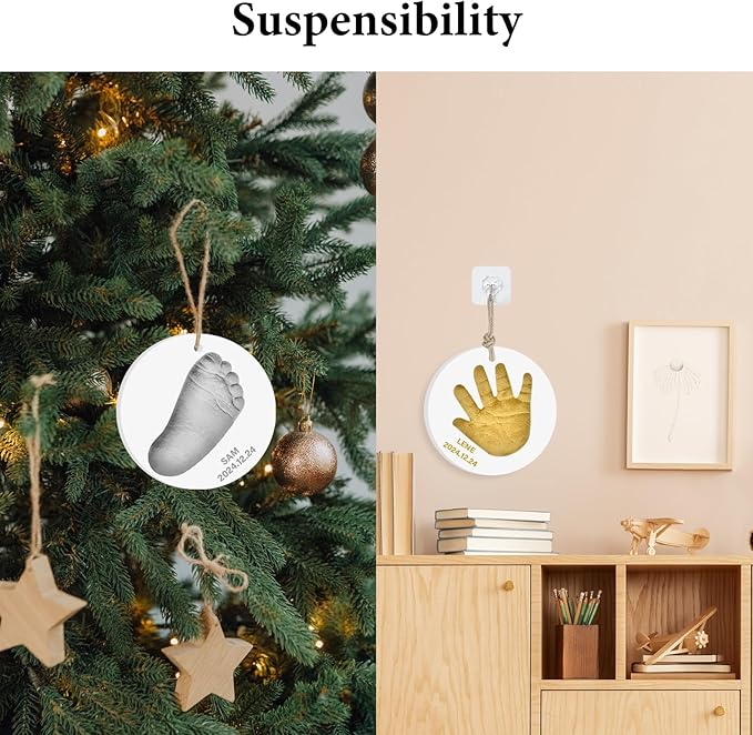 • Record Your Baby's Growth:Create Meaningful memories Don't let newborn exhaustion erase those precious memories.This baby souvenir clay ornament captures their perfect little handprint, footprints, fingers and toes. It's a must for newborns!