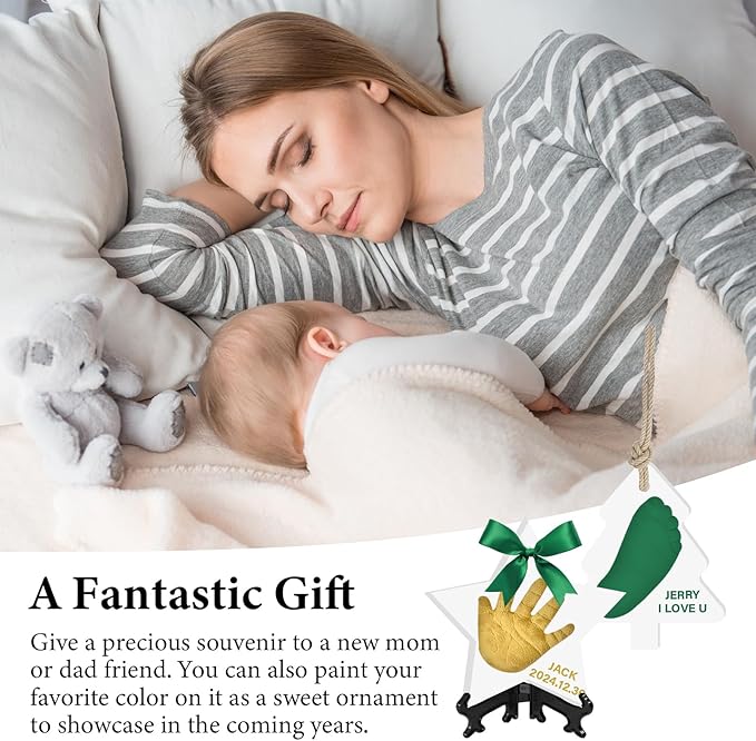 • Record Your Baby's Growth:Create Meaningful memories Don't let newborn exhaustion erase those precious memories.This baby souvenir clay ornament captures their perfect little handprint, footprints, fingers and toes. It's a must for newborns!