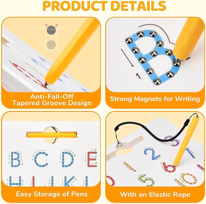 • Interactive Learning Experience: As children trace letters and numbers with a stylus, metal beads pop up and create sound, providing visual and auditory feedback. This significantly enhances the interactive and fun aspects of learning. Letters and numbers can be easily erased with a finger, setting the stage for the next round of practice