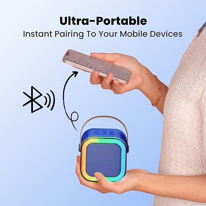• Cute & Compact: User-friendly design ensures operation with ease, child-safe & durable materials are perfect for girls and boys aged 3-12 years old kids. Easy to carry, this portable karaoke machine doubles as a Bluetooth speaker for family dance parties, bedtime stories, or mom's workout sessions - entertainment for every occasion