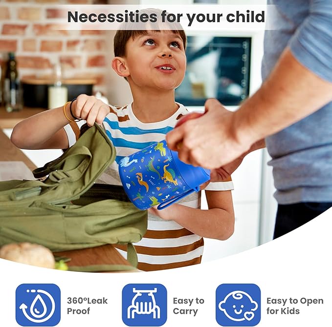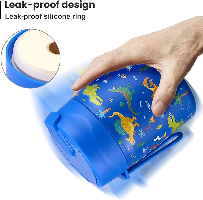 • Leak-Proof Design: Featuring an upgraded double-layer silicone seal that provides a 360ยฐ leak-proof guarantee. Rest assured that our leak-proof thermo food jar can fit in your lunch bag without worrying about spills. The insulated thermal food jar comes with a stainless steel spoon for your child's convenience.
