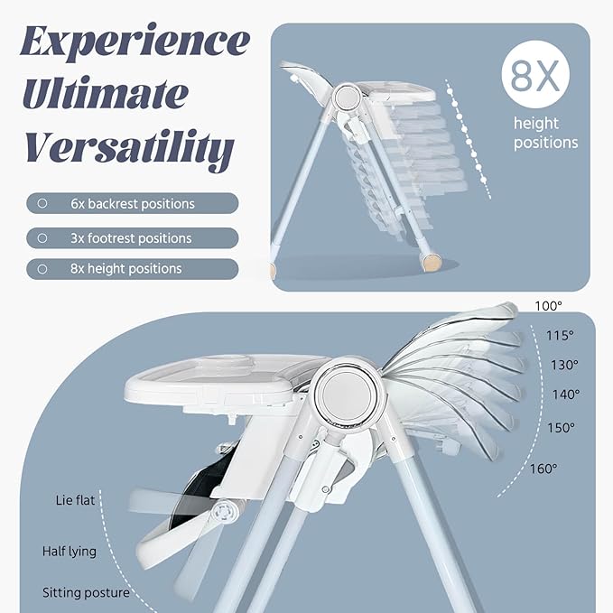 • 4.Flexible Adjustments: Features 8-level height adjustment, 4-level backrest recline, and a 5-position extendable tray to grow with your child.