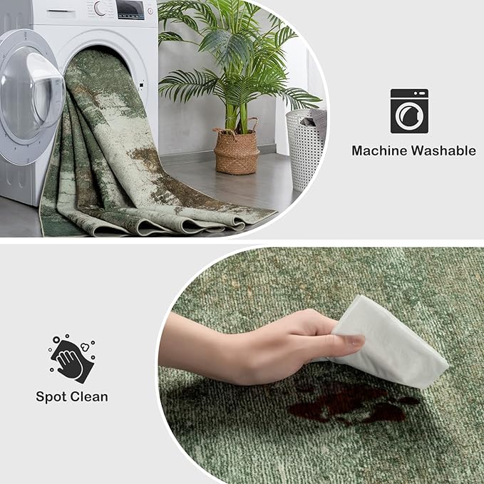 • Easy to Clean:The 4x6 green rug can be wiped or vacuumed to remove the fine dust and stains of everyday life. It can also be machine washed if necessary, and this low-maintenance design ensures you can enjoy life to the fullest. Tip: The washable rugs may be wrinkled, but don't worry. You can spray water on the creases and then place the rug face down or hang or lay it flat and the creases will disappear naturally after a few days of use