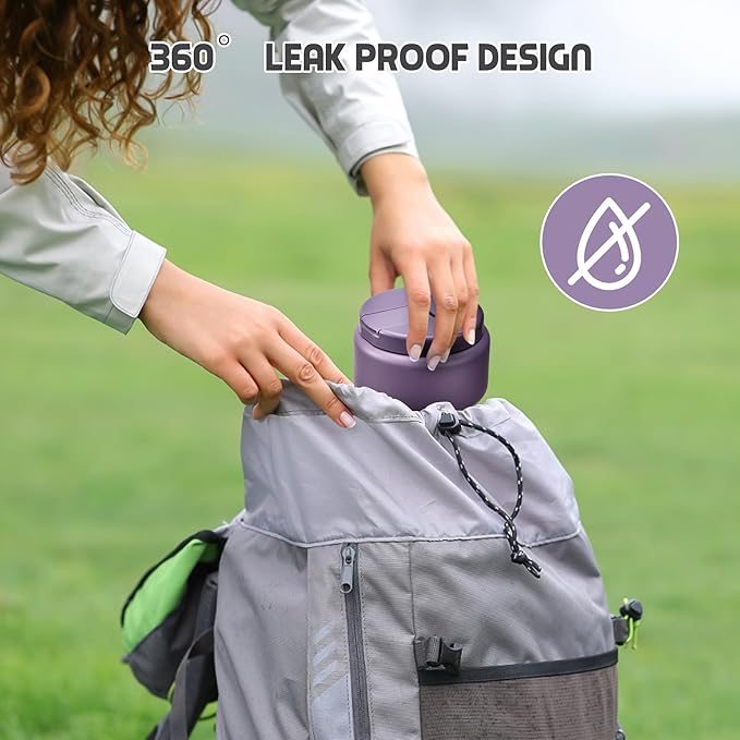 • 100% Leak Proof :Our food thermo comes with a thick silicone gasket. It is full sealed. So you can toss it in your bag or insulation bag without worrying about spills. Wide mouth design are also very easy to clean.