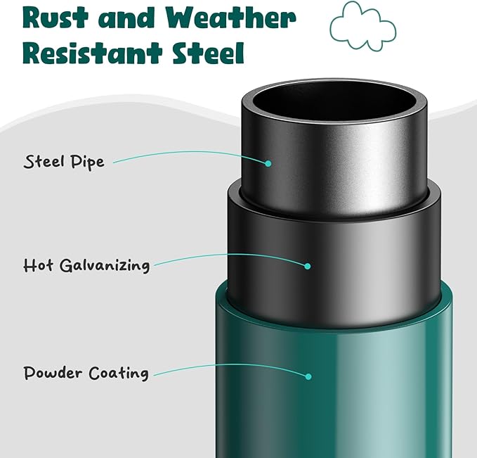• 【Sturdy Playset】Constructed from 65 rust-resistant steel tubes, this heavy-duty outdoor climbing dome can support up to 800 lbs. (Max weight capacity for single tube is 133 lbs) The 10 green poles use thicker tubes for enhanced support