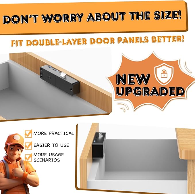 • 👍【No More Worry About Size】Newest upgraded lock is narrower, more practical and easier to install on double-layer door panel drawers for better space utilization.