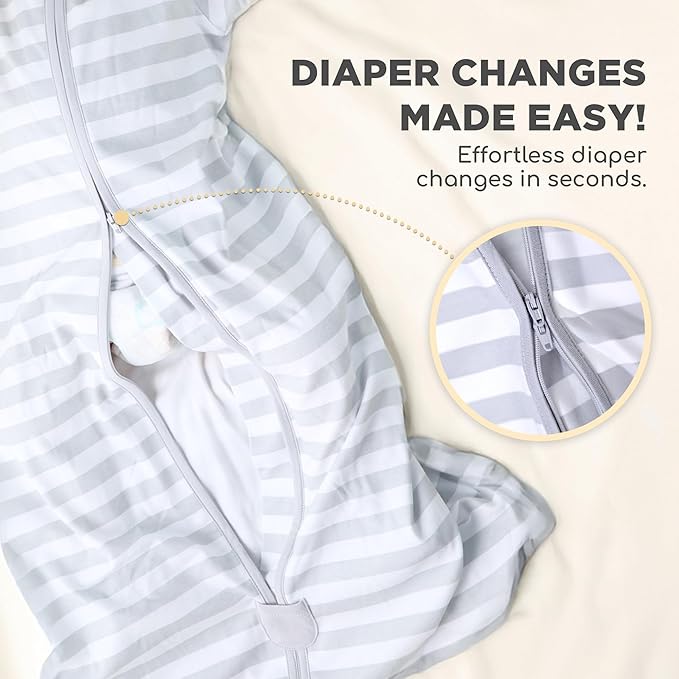 • 【SAFE, SECURE, & BABY-FRIENDLY SLEEP ENVIRONMENT】— Have peace of mind knowing your baby is sleeping soundly without the risks of loose blankets. Our wearable sleep sack provides a snug, secure fit for safe and comfortable rest. A protective tab guards your baby’s neck and chin, preventing irritation, while the bottom zipper cover keeps curious hands from unzipping the blanket. This thoughtful design ensures your little one stays cozy and undisturbed all night long.