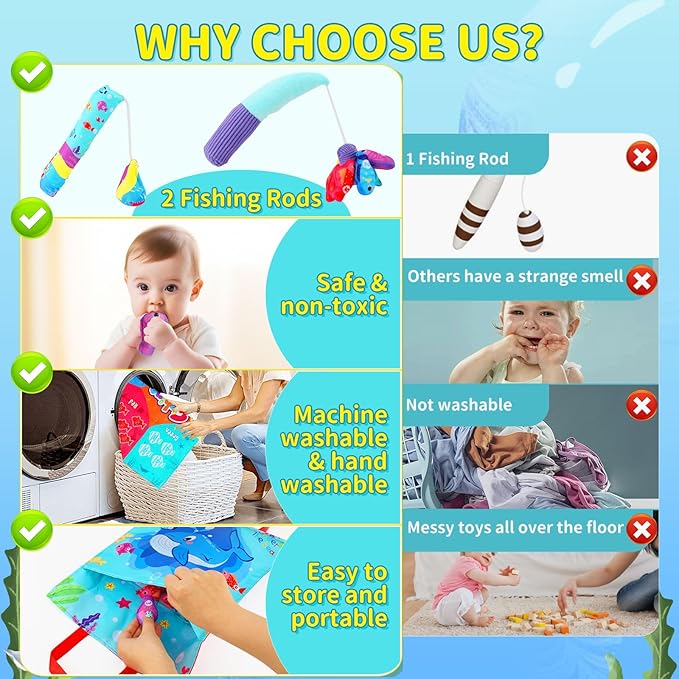 • - Safe and Durable: Crafted from high-quality, child-friendly materials, our baby fishing toy for 3 years and up ensures a safe play experience. Soft textures make it gentle for tiny hands, providing peace of mind for parents while their children explore