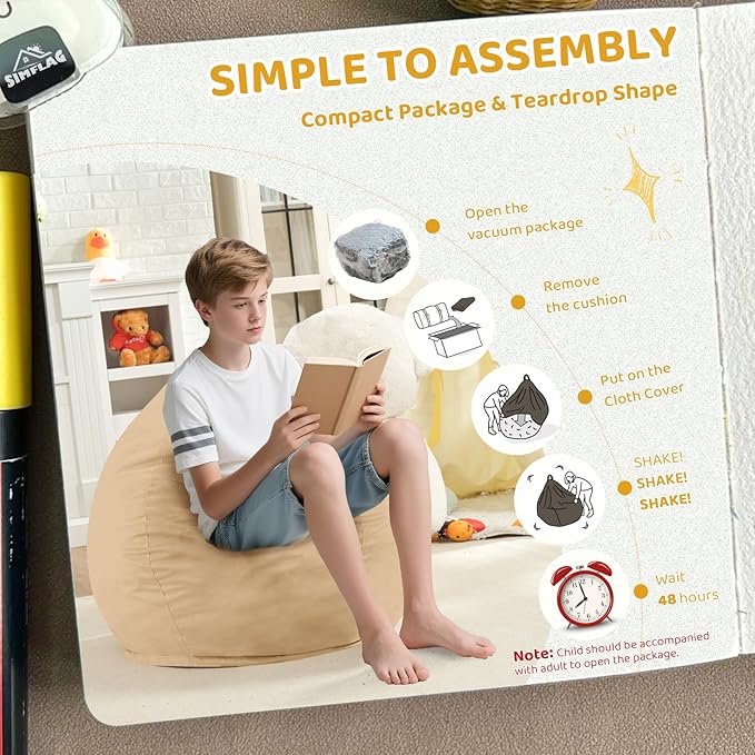 • WIDELY USE FURNITURE: Bean bag chairs is ideal for watching movies, studying, reading, gaming, napping, or just chilling, and is the perfect addition to every space, playroom, kid's room, living room, office, or school dorm.