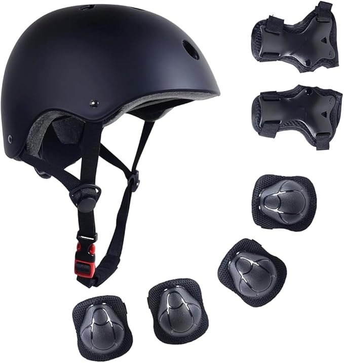 • 🚲【7 in 1 CHILD PROTECTIVE GEAR SET】Kids Bike helmet🪖 protective Gear for boys girls all-round and perfect protection, including 1 X Helmet, 2 X Elbow Pad, 2 X Wrist Pad, 2 X Knee Pad