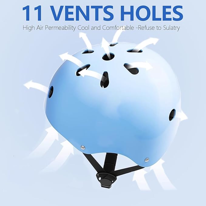 • 🛹【VENTED & COMFORTABLE】19 air vent let air go through the kids helmet,Toddler skateboard helmet set can keep their heads cool even. Kids scooter🛴 helmet internal protective padding is soft, detachable and washable.Kids adjustable helmet with soft and comfortable chin pad, no more worries about that the straps may scratch child's sensitive skin.