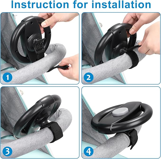 • Easy to Install: This steering wheel designed with a Velcro, remain stable and easily attached to stroller handlebar or any device with handles. Complete installation in a few seconds.