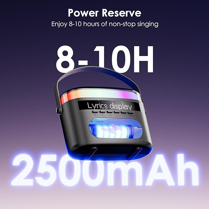 • Wireless Connectivity & Universal Compatibility: Pair devices instantly via cutting-edge Bluetooth 5.3 (50ft range) while dual mics auto-sync for zero-lag duets. Flexible connectivity options include USB/TF card slots, AUX input, and compatibility with Android, iOS, TVs, tablets, and car stereos - making this your ultimate portable karaoke hub.