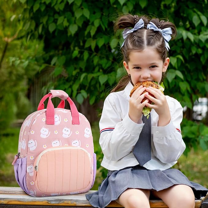 • 【Attractive mini kids backpack】:GAGAKU kids backpack is made of high quality cotton-polyester blend, Made of high quality and harmless materials, it is comfortable and lightweight, so that children can carry it with more peace of mind,personalised backpack for girls with pink cat print, easy to clean, perfect for girl aged 2 to 5 years old