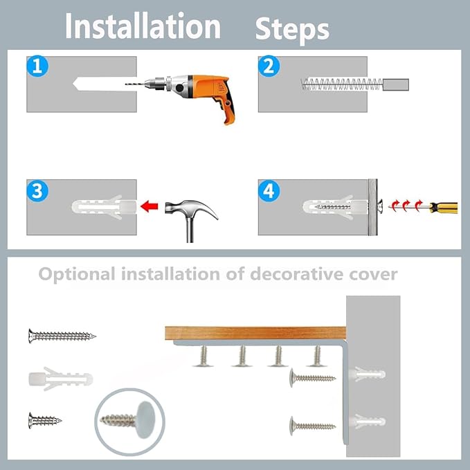 • Package Includes๏ผˆfurniture anchors for baby proofing๏ผ‰: Furniture anchors Use the hardware components included in the package, and baby furniture anchor Package Includes๏ผšAll parts made of high quality steel, includes4 pack Stainless steel bracket, 8 pcs Long wall screws, and 16 pcs Wall anchors 8pack expansion nails plugs y to install with a screwdriver or drill driver.
