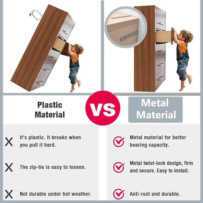 • Easy To Install: Furniture anchor Use the hardware components included in the package, and easy to install with a screwdriver or drill driver. anti tip furniture anchors are detachable if you need to clean behind furniture or remove furniture (bookshelfใ€dresser etc๏ผ‰