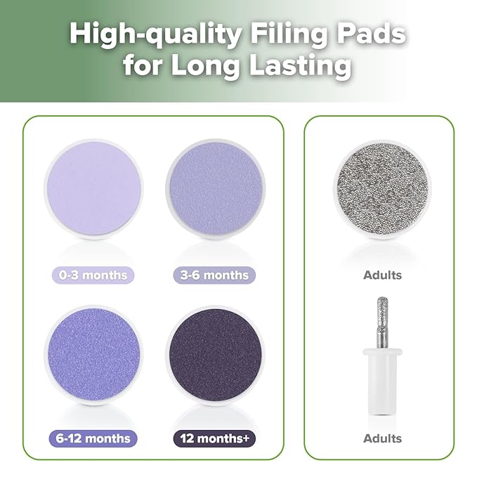 • SAFE & GENTLE: With a pressure-activated safety system, our electronic baby nail file is gentle on tiny fingers, preventing injuries and giving parents peace of mind.