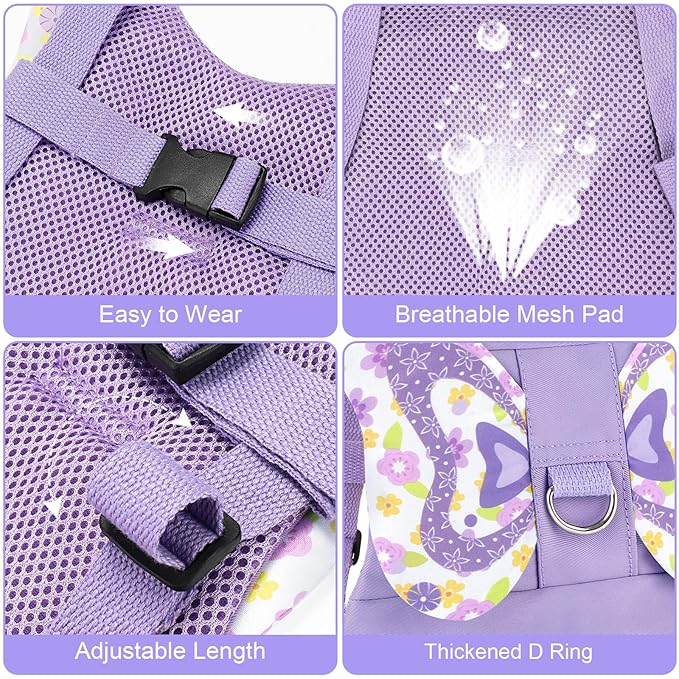 • Adorable Design: Lovely and funny butterfly pattern original designed keep kids innocent and stimulate imagination. Front extra pocket for snacks handkerchief, the equipped anti-lost rope or other mini necessities