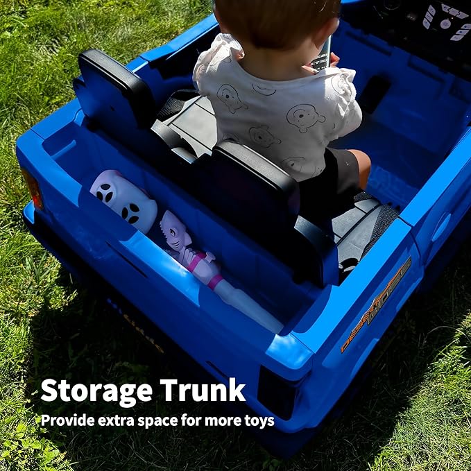 • 19" TWO SEATER: Hikiddo 2 seater ride on car for kids with remote control also allows two children to ride together comfortably with 110lbs Max capacity. Additionally, it includes a storage space for kids to keep their toys.