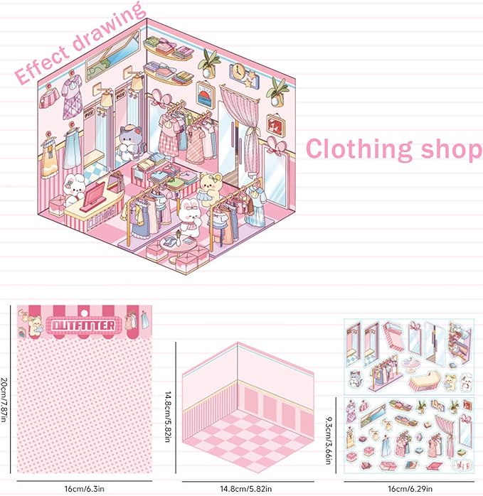 • Creative DIY Project: Engage in a fun and creative activity with our DIY 3D house stickers, suitable for both kids and adults. Create charming scenes of supermarkets, coffee shops, bookstores, and more using the cute cartoon stickers included in the set.